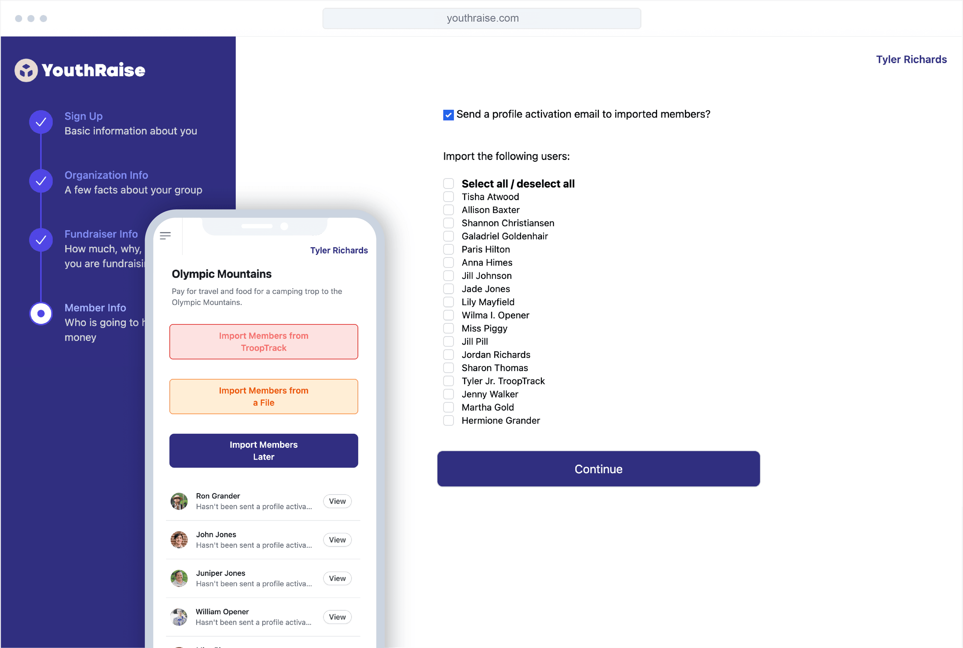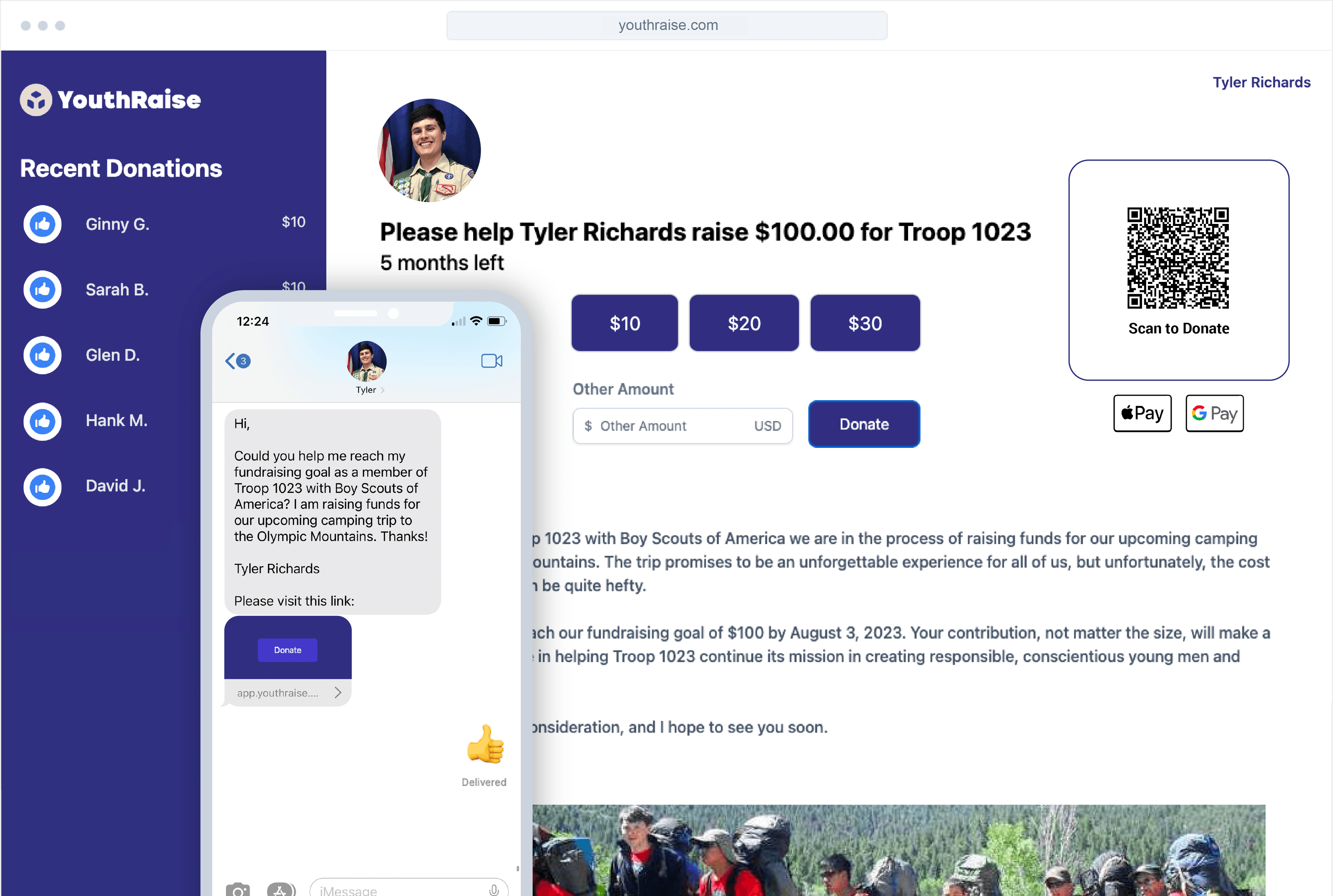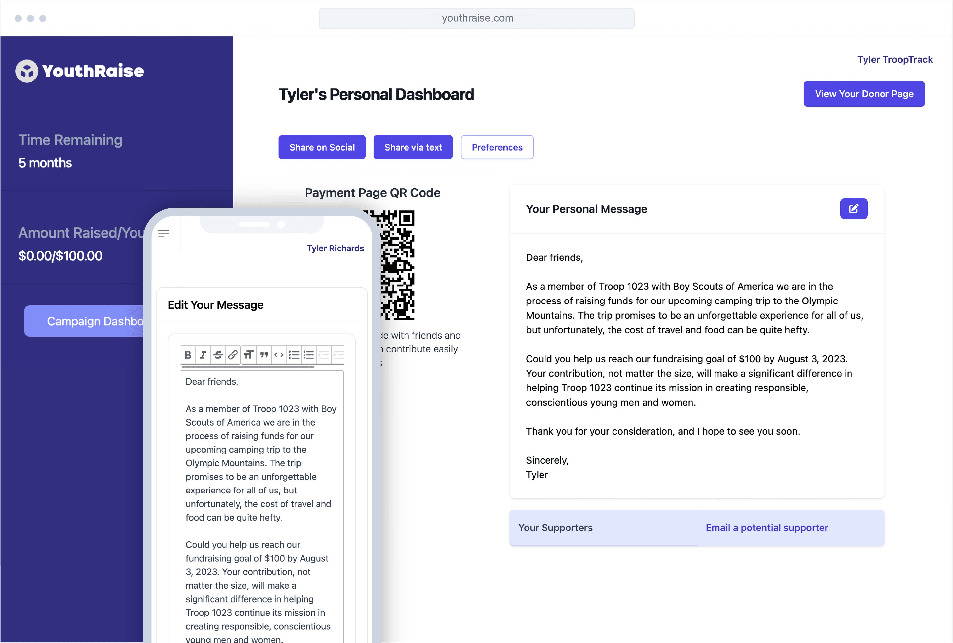 From generating emails to past donors to collecting payments and managing member participation, YouthRaise has everything you need to raise money for your youth group